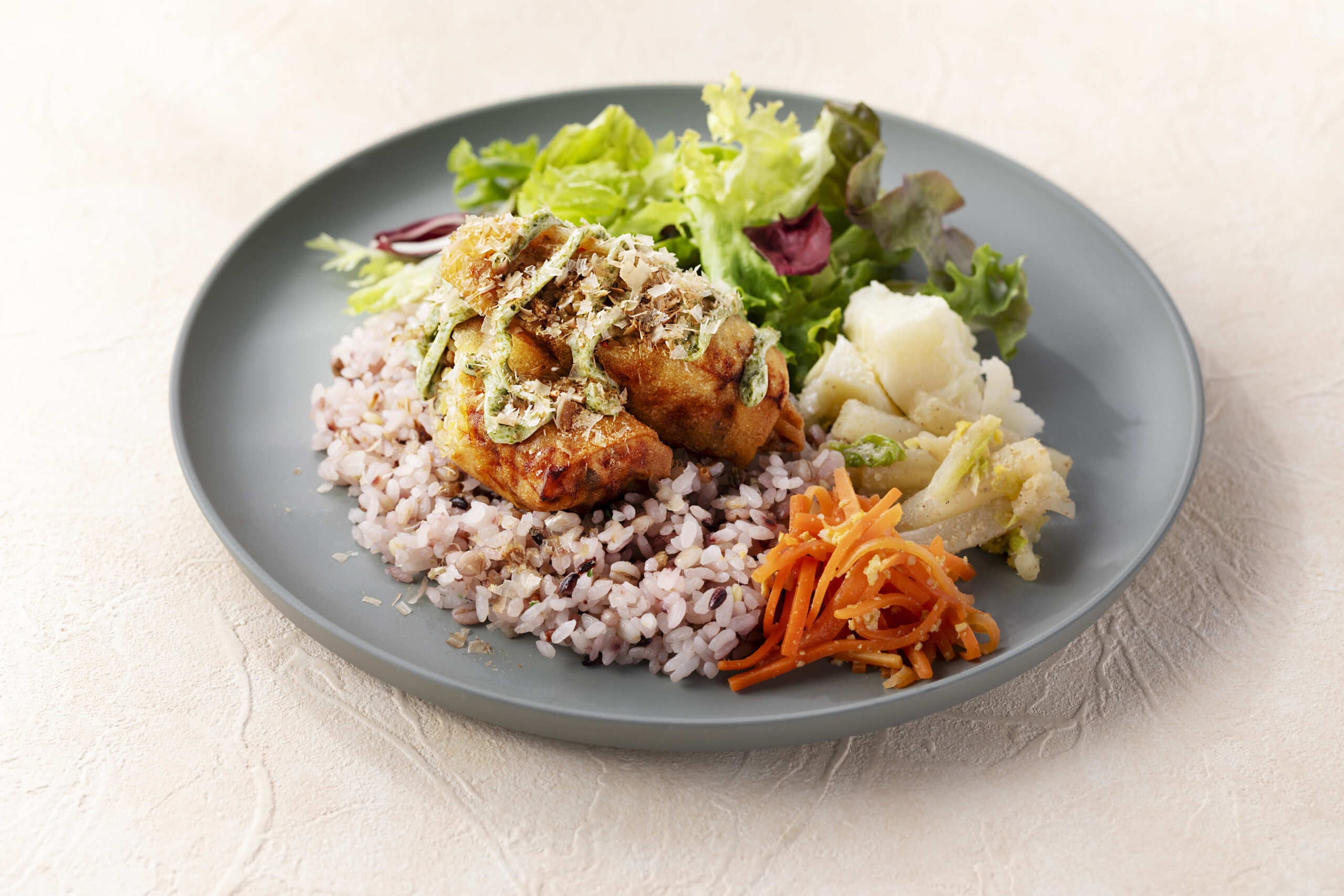 VEGETABLE LIFE CAFEでは、全国各地の食材を使用したメニューをご用意しております。2週間ごとに新しいメニューへと切り替わるため、訪れるたびに新鮮な味わいとの出会いをお楽しみいただけます。